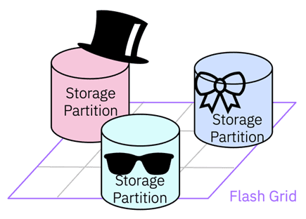 Da mesma forma, a flexibilidade das configurações é aumentada a partir da implementação do Flash Grid. Na medida em que sistemas em um Flash Grid podem ser adicionados e atualizados de forma independente, há a possibilidade de adição/remoção/substituição de hardware ou definição de camadas dentro do mesmo Flash Grid. Partições de armazenamento podem ser migradas sem interrupção entre sistemas utilizando a Migração de Partição de Armazenamento sem interrupção.